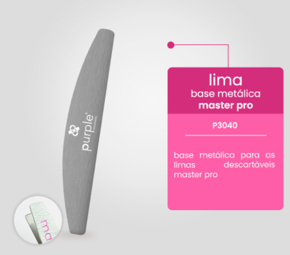 Home Limas e blocos Base metálica Master Pro Purple Base metálica Master Pro Purple 3,61 € 4,51 € Desconto de %. Compre este produto e ganhe 3 Pontos! 1000 PONTOS = 1 VERNIZ GEL Comprar Contactar Adicionar à wishlist MARCO26. Válido de 8 de Março de 2026 às 00:00 até 30 de Abril de 2026 às 23:30. Lima Base Metálica Master ProBase metálica para as limas descartáveis Master Pro. Marca Purple Características Partilhar