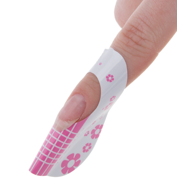 Escala de comprimento lateral (de 1 a 7), uma grade auxiliar precisa ajudará na construção de um quadrado de sala de estar. Uma grande superfície adesiva é garantia de extrema fixação da forma e perfeita adesão à unha.